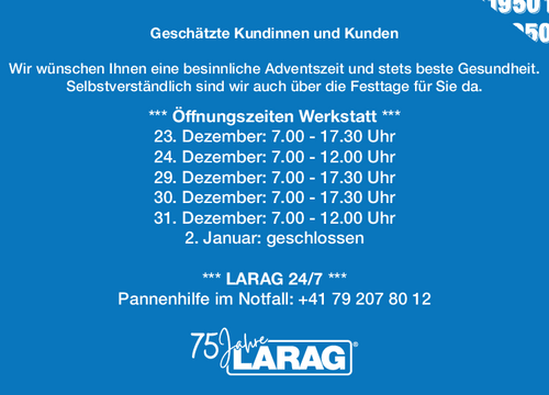 LARAG steht seit 1950 für Kunden begeistern und Erstklassiges leisten, gemeinsam agieren, verantwortungsvoll handeln und eigenständig und unabhängig bleiben.
